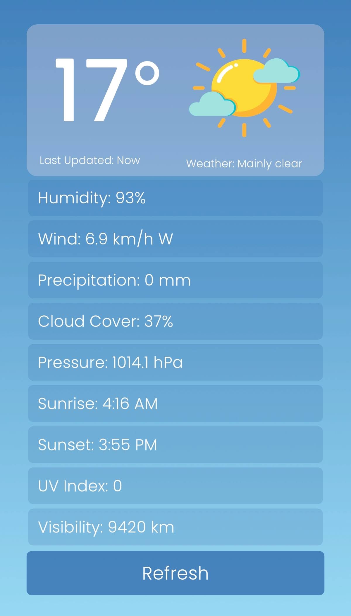 ✅ Auto-Refresh: Updates the weather data with a single button click.